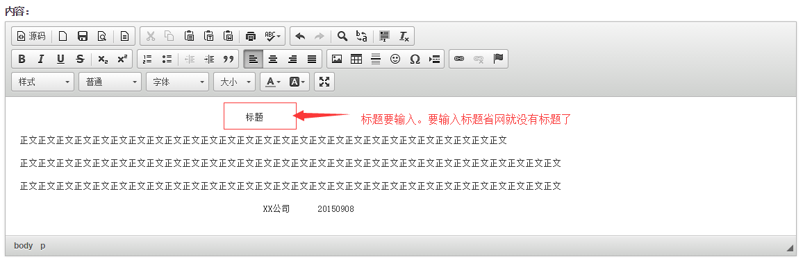 5、 輸入正文 標(biāo)題要輸入(如果不輸入標(biāo)題省網(wǎng)就沒有標(biāo)題了。)